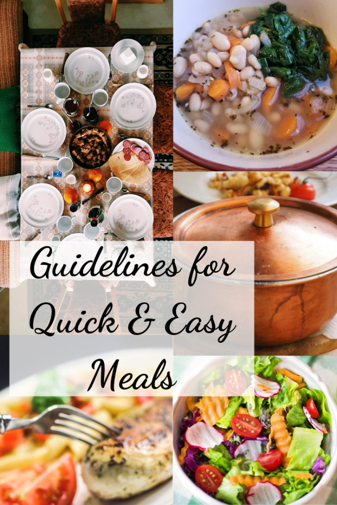 It starts with that moment when you stop to think, “Ok… what am I feeding my family?” Decide how much time you have to get something on the table and how much energy you have to pull it all together. Then, simply follow these guidelines for getting good food on the table.