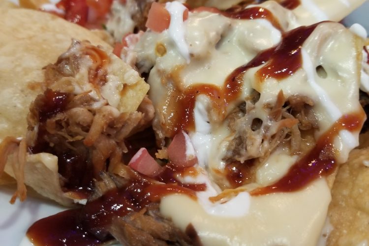 A variety of interesting food ended on our table, and it was all very good. Bacon wrapped scallops, Shrimp & grits, fish and kid sliders to name a few. However, nachos is one of our favorites, gluten-free or not! So, when we saw Pulled Pork Nachos on the menu, two plates of it ended up on our table. Smokey, crunchy, spicy, sweet, creamy… Let’s just say that the ones that didn’t order nachos for dinner may have regretted it. So, so good!!!